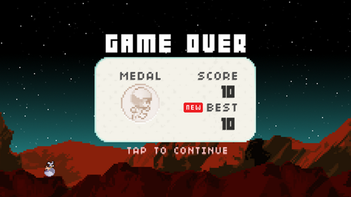 An endless runner in space. This iOS mobile game was featured on the Apple App Store under βNew Games We Love.β The app was built in the summer of 2015 by a team of two. Bounding through space with unlocked and upgraded characters, this game offers unique and uncharted terrains and a full set of animated characters.